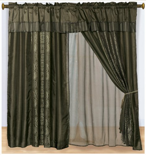 Luxury Coffee Faux Silk Embroidery Swirl Window Curtain / Drape Set with Sheer Backing-treatment Draperies Review